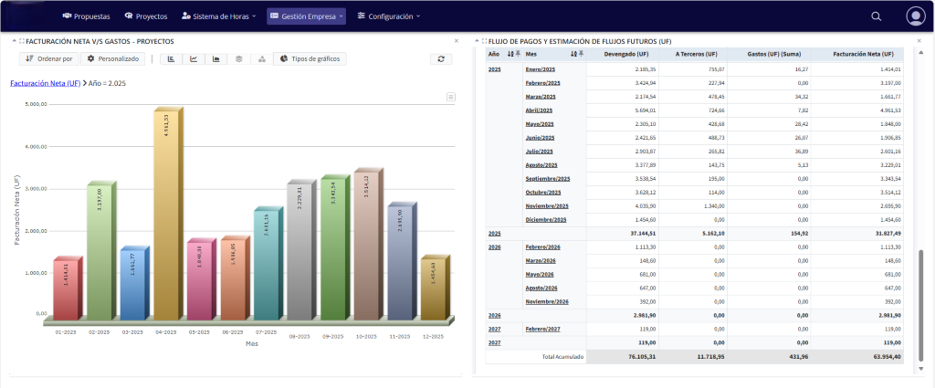 Este sistema, como solución integral y escalable, reemplaza completamente los sistemas manuales basados en Excel, unificando la gestión de propuestas, control de proyectos, registro de horas y análisis de flujos futuros. Una plataforma centralizada que automatiza procesos, mejora la eficiencia operacional y proporciona visibilidad completa de todas las operaciones empresariales.
